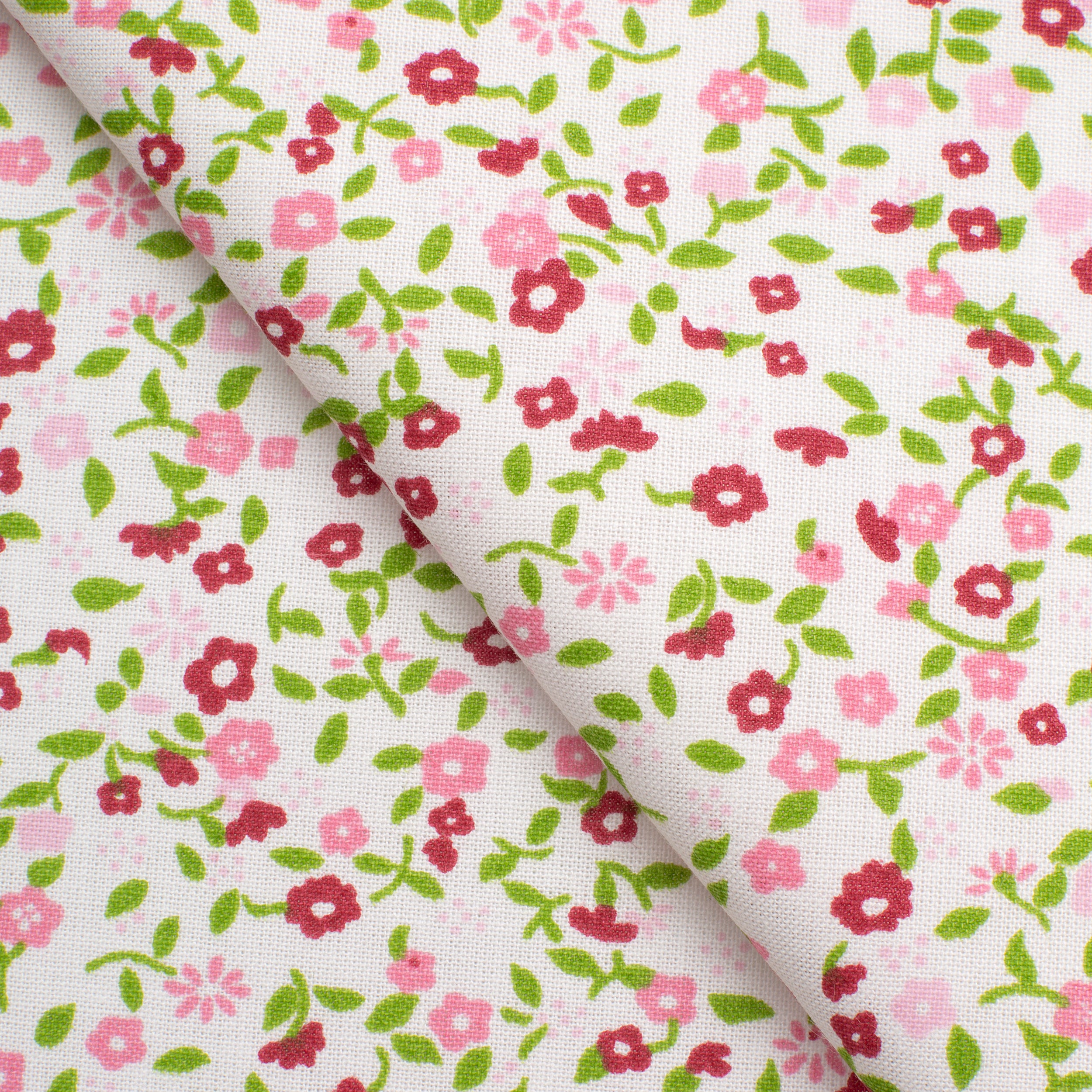 Add lightness and freshness to your designs with 4.2 OZ COTTON POPLIN fabric. A fine, dense print of flowers in shades of red and pink with green leaves is arranged on a white background. This motif gives the fabric a romantic, spring character, perfectly fitting for arrangements in rustic, shabby chic or Provencal style.