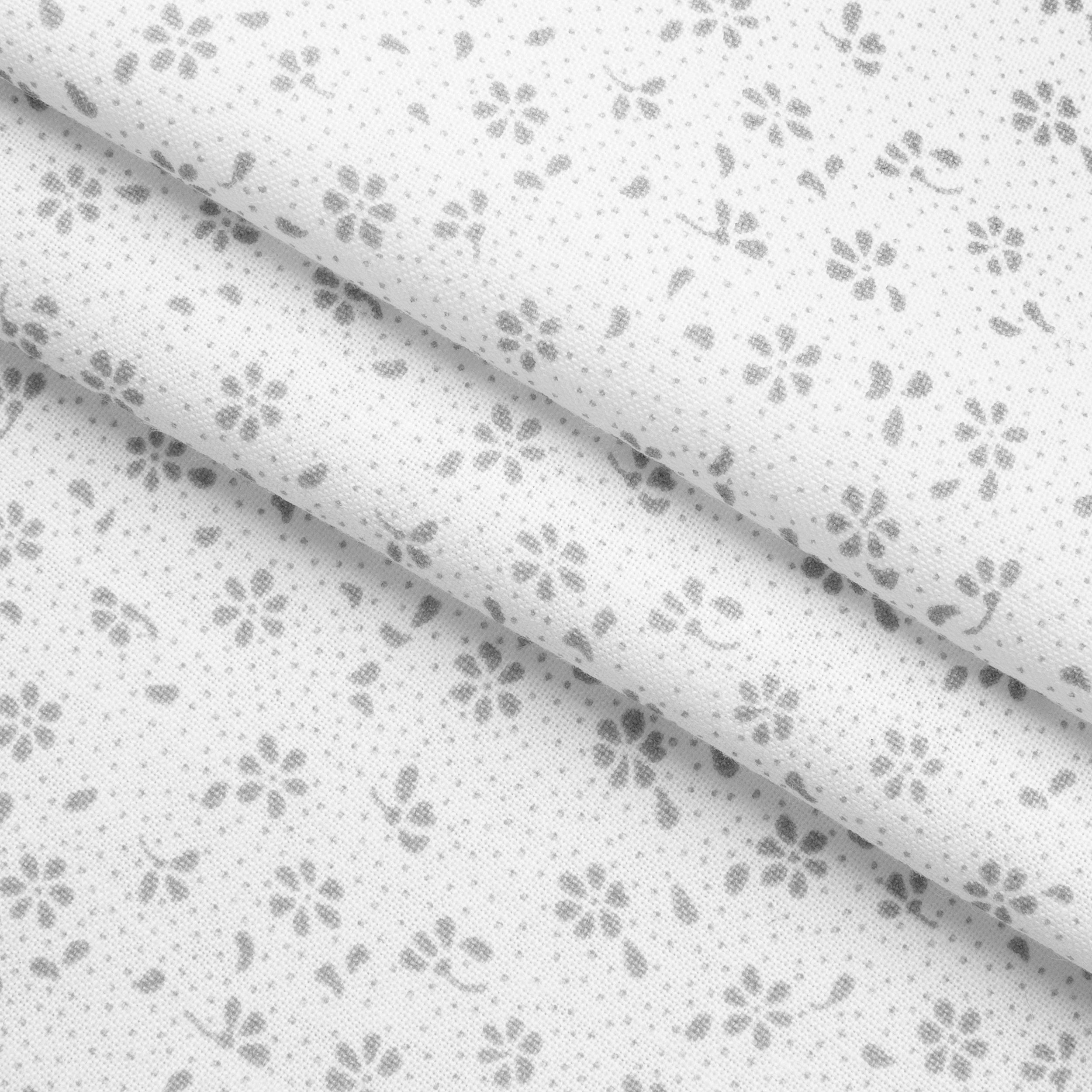 Add subtlety and harmony to your designs with 4.2 OZ COTTON POPLIN fabric. A delicate print of small gray flowers and leaves is arranged on a white background, complemented by small dots, which give the whole a light, romantic character. The subdued color scheme makes the fabric ideally suited for minimalist and elegant arrangements.