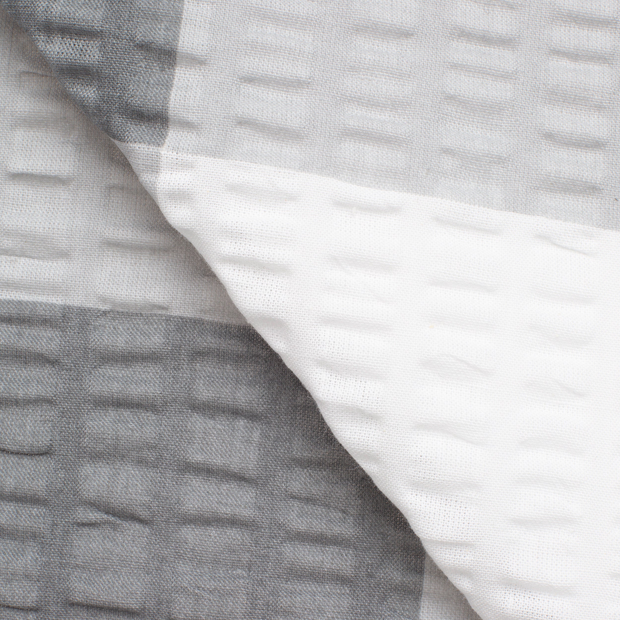 SEERSUCKER FABRIC - GREY/WHITE PLAID fabric is an elegant combination of white and shades of gray in a geometric pattern, which will add a modern touch to any interior. With a weight of 160 g/m2 and a density of 140, it combines durability, stable weave and aesthetic appearance, maintaining excellent condition for a long time.