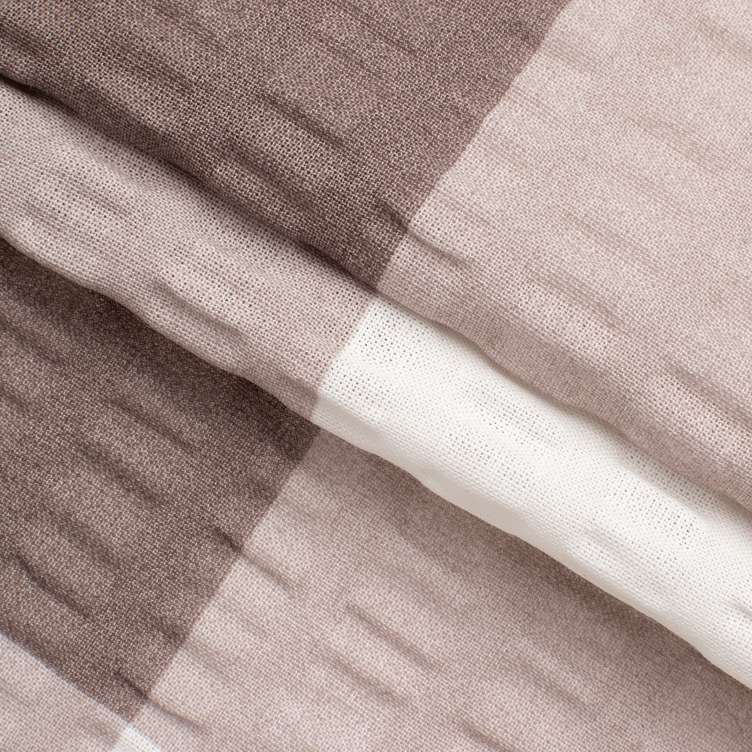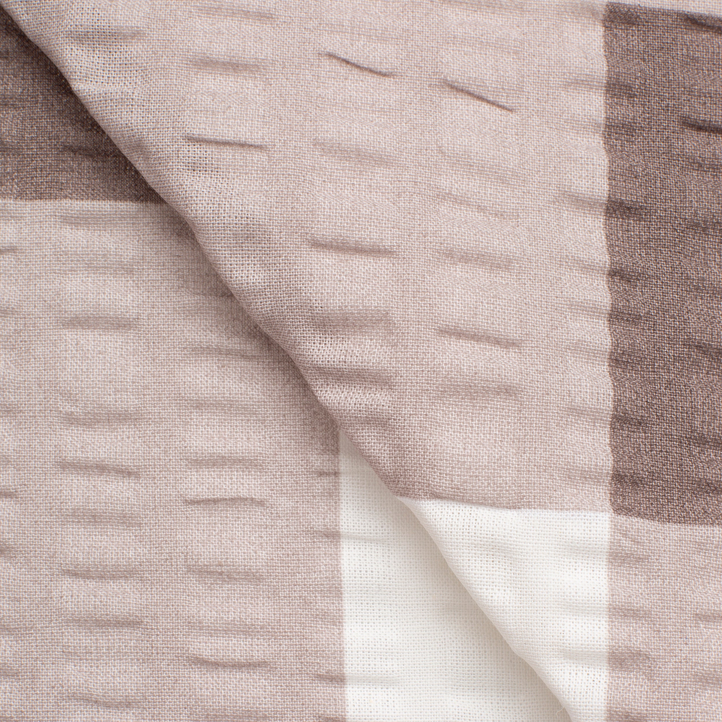 SEERSUCKER FABRIC - BROWN/CAMEL/WHITE PLAID fabric is an elegant combination of beige, brown and white tones in a geometric pattern that will give your interior a warm and modern feel. With a weight of 160 g/m2 and a density of 140, it ensures durability, a stable weave and an impeccable appearance for a long time.