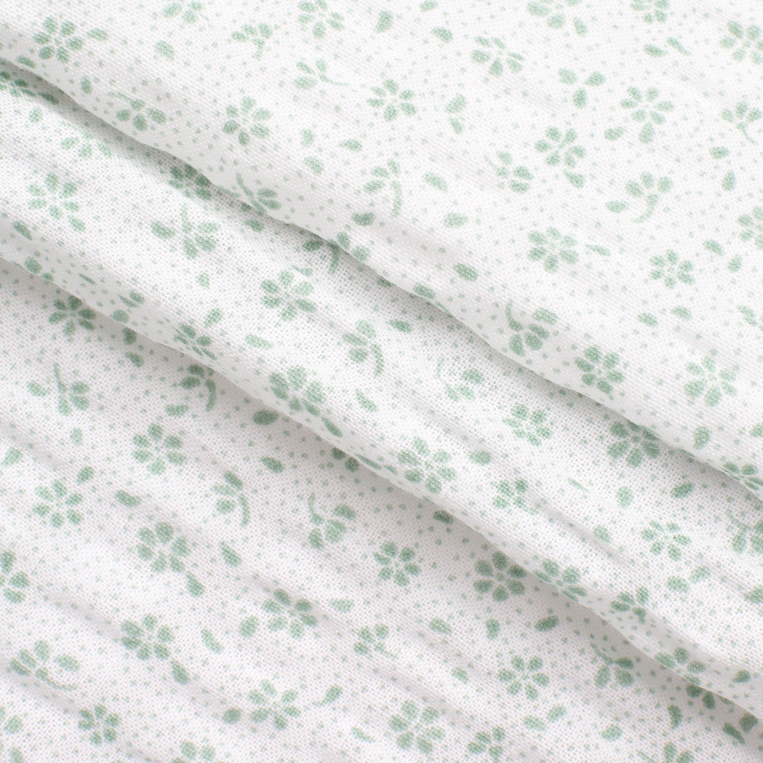 4.2 OZ COTTON POPLIN - PRINTED - SMALL GREEN FLOWERS fabric is a combination of natural comfort and a subtle pastel green pattern of small flowers, which will bring freshness and delicate charm to the interiors. With a weight of 160 g/m2 and a density of 140, it guarantees durability, a stable weave and an aesthetic appearance for a long time of use.
