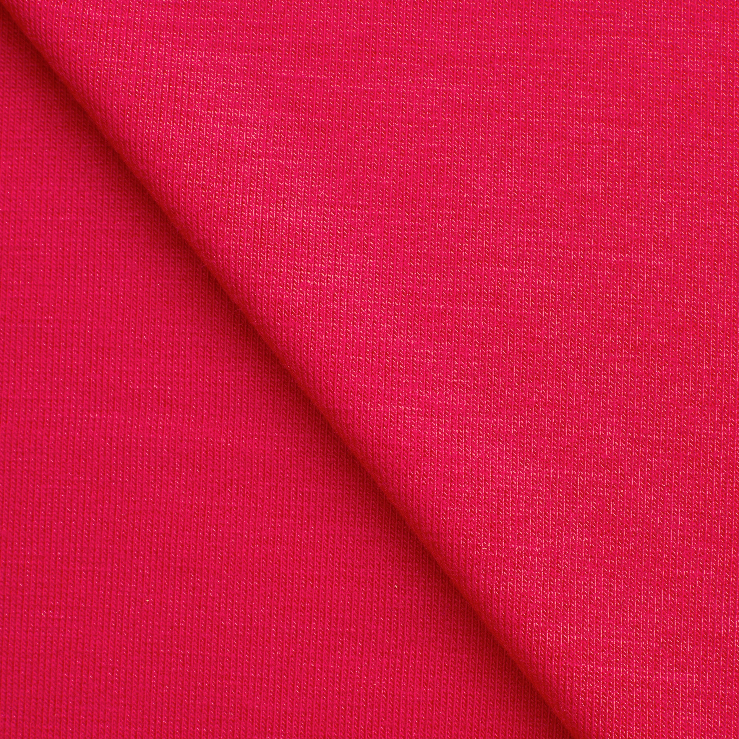 Bring your designs to a world of intense colors with BAMBOO JERSEY KNIT fabric in raspberry shade. This fabric combines elegance and functionality, and promises durability and impeccable appearance. With its unique structure and 210 g/m2 weight, the fabric is ideal for creating garments that are meant to be both durable and comfortable. The weave density of 165 threads per inch guarantees exceptional durability, while remaining soft and breathable. In the composition (95% bamboo, 5% elastane) you will find the perfect proportions.