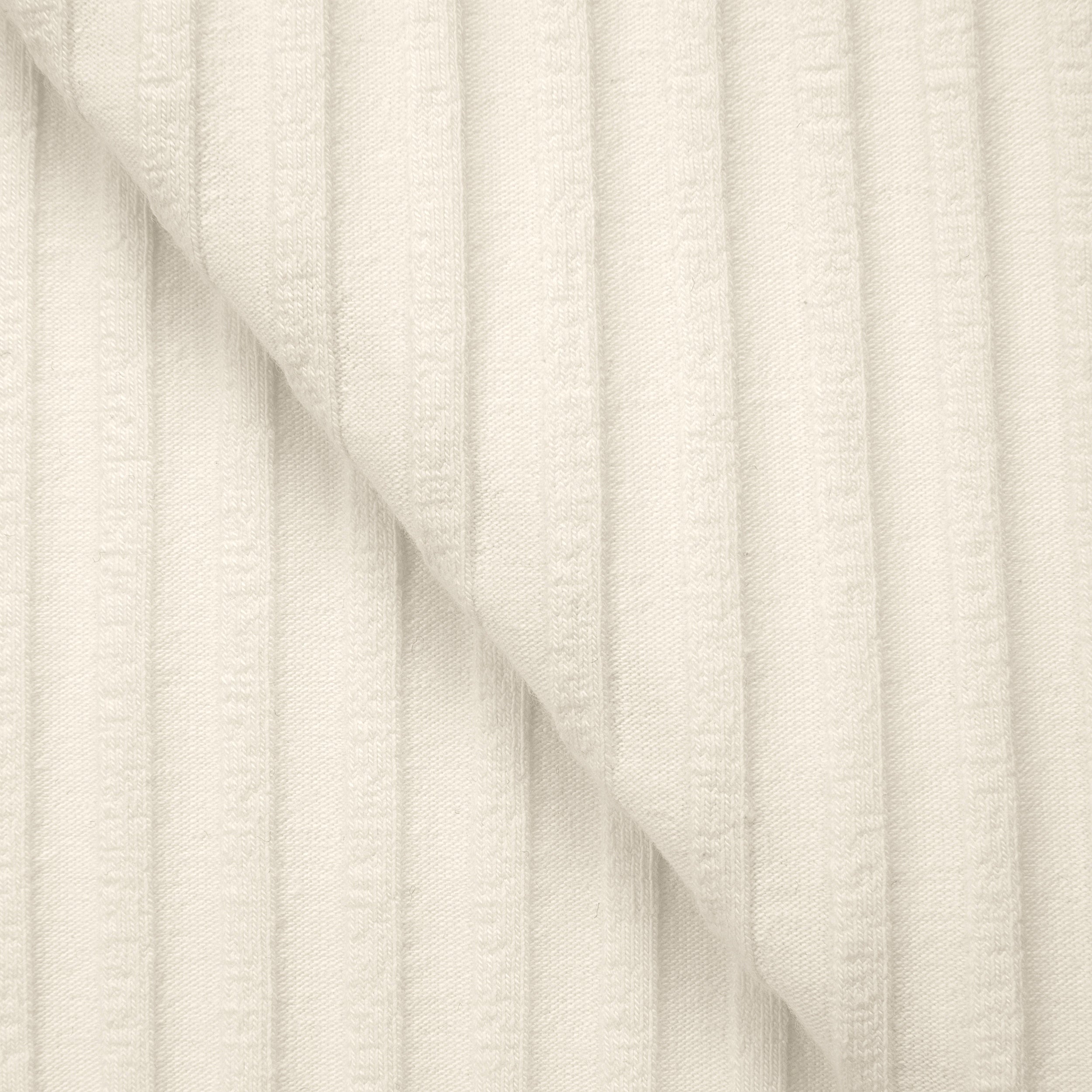 The 10/6 rib knit, with a weight of 250 g/m2, is distinguished by its meatiness and durability. The weave density of 110 threads per inch ensures its stability and resistance to deformation. The composition with dominant cotton (97%) makes the fabric pleasant to the touch and breathable, while the addition of elastane (3%) guarantees elasticity and resilience.