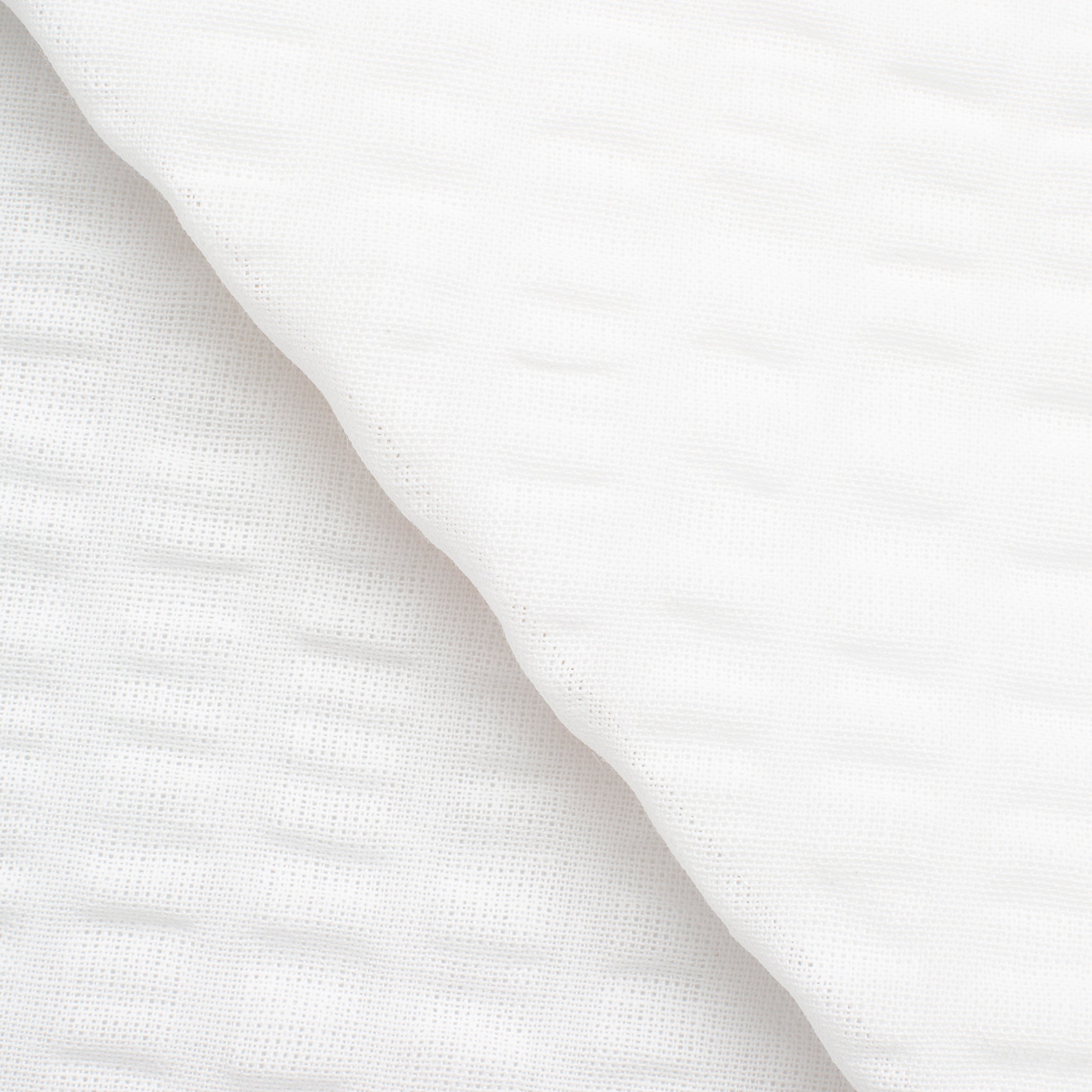 Introducing the versatile 4.2 OZ COTTON POPLIN -WAFFLE WEAVE fabric in white, which combines natural comfort with a classic, versatile design.This 160 g/m2 knit fabric promises durability and impeccable appearance, ideal for bedding and decoration.