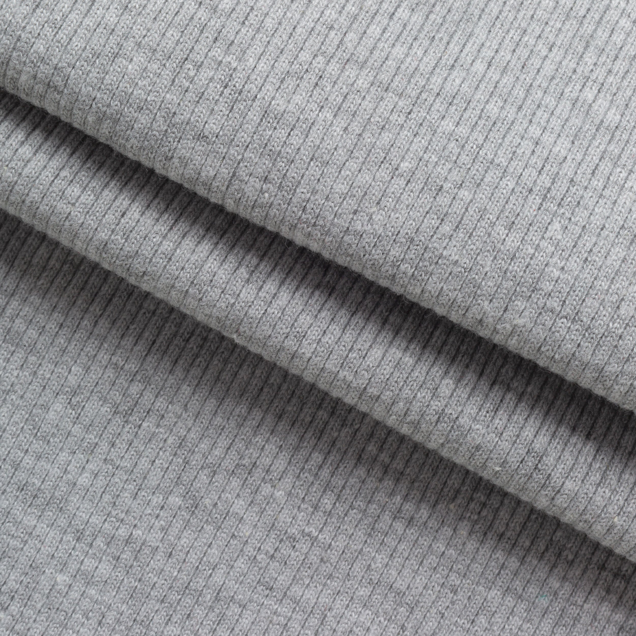 Discover HEATHER GREY MELANGE 2 X 1 RIB fabric in GREY MELANGE BLEACHED, which combines flexibility with elegance and functionality. This 350 g/m2 fabric promises comfort and durability, ideal for creating form-fitting garments.