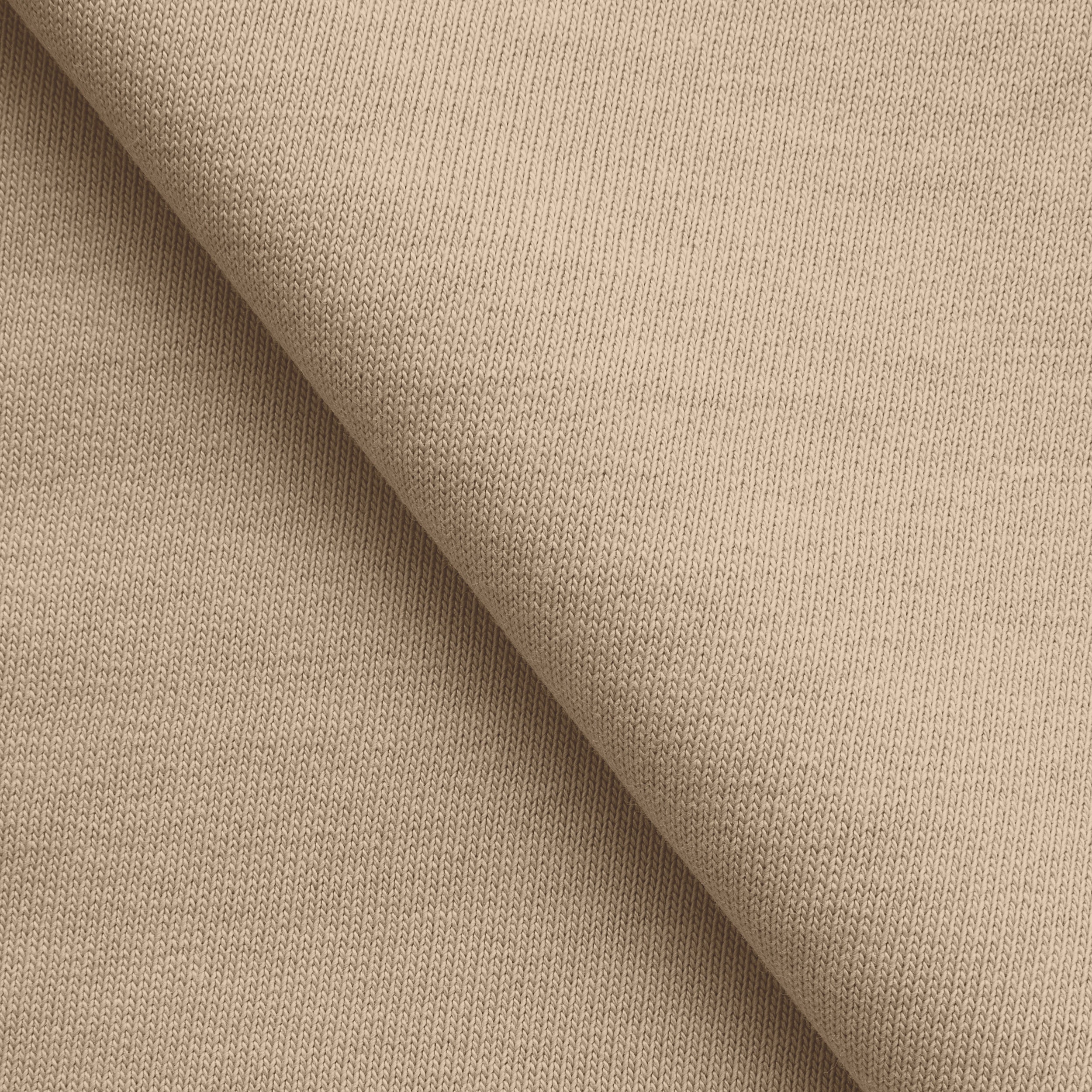 MID WEIGHT COTTON FRENCH TERRY fabric in PLAZA TAUPE color is an ideal base for creating warm and comfortable projects. The material with a loop structure and a weight of 340 g/m2 promises exceptional softness and durability, and its composition makes it a conscious and responsible choice.