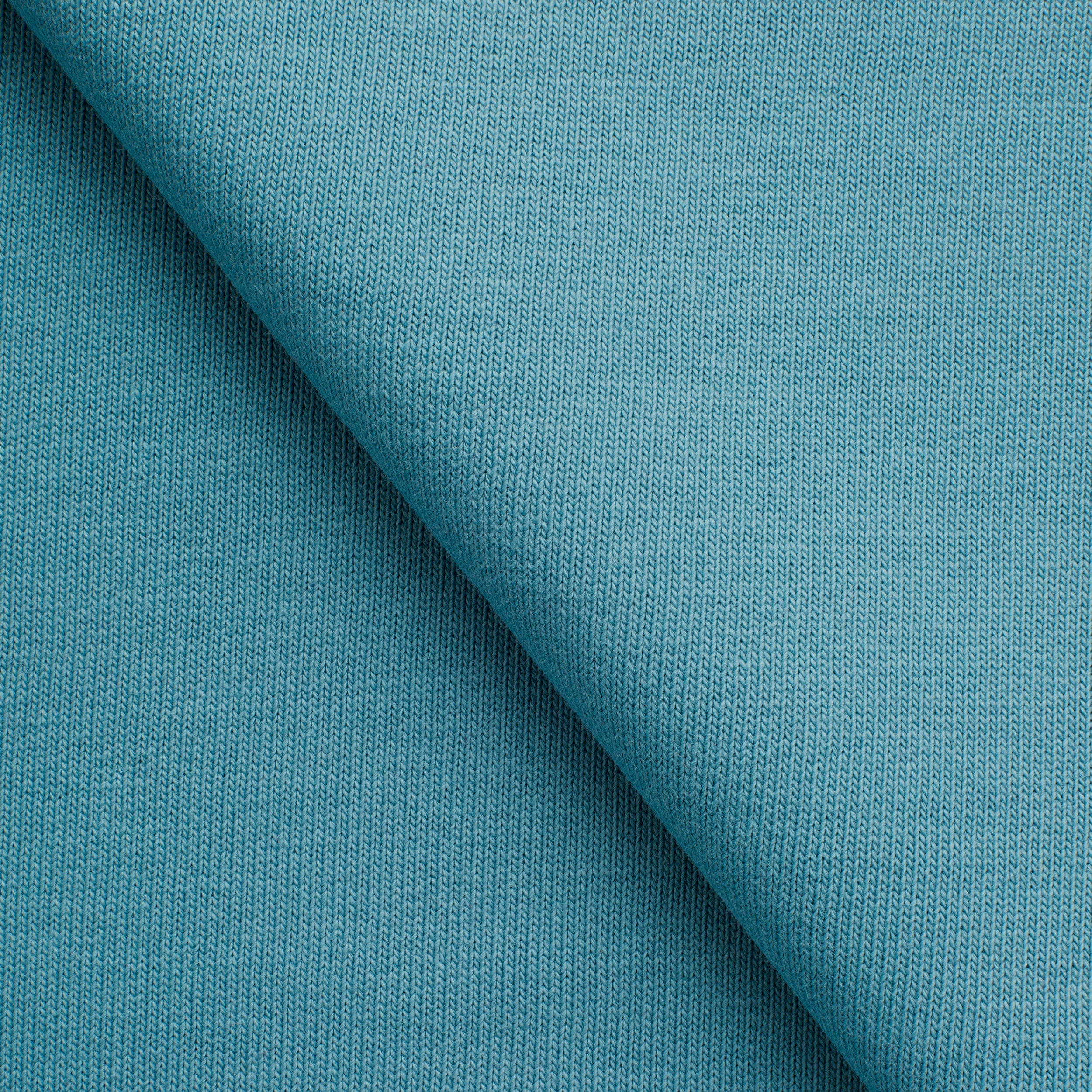 Introduce a unique sweatshirt knit into your designs that combines natural comfort with modern design. This 340 g/m2 fabric promises breathability and durability, perfect for year-round collections. The intense storm blue color adds depth and originality to the designs.