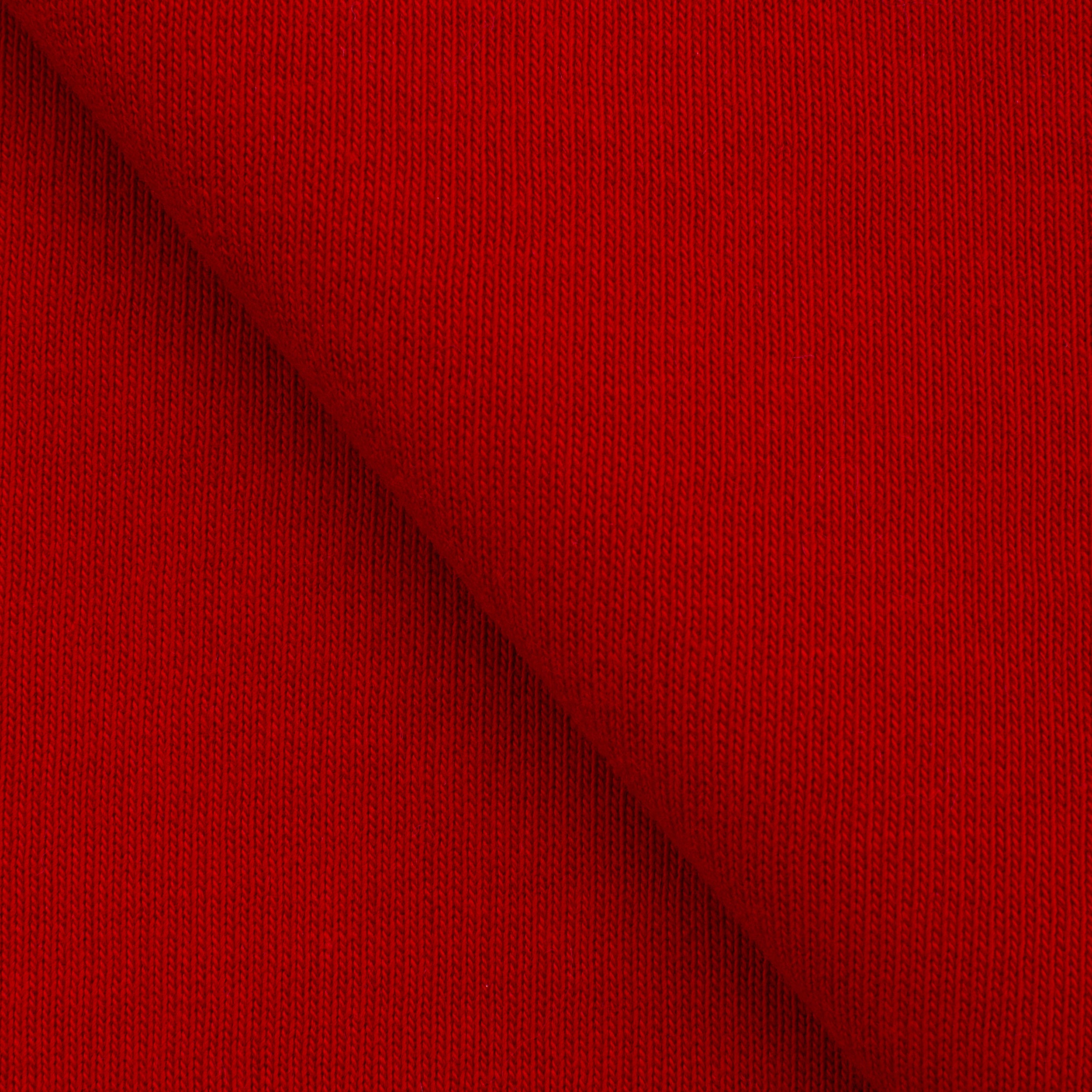 Create fashion that is both classic and modern by using our LIGHTWEIGHT COTTON FLEECE in the intense color HIGH RISK RED. This lightweight and stretchy fabric is the perfect canvas for creative ideas, guaranteeing freedom of movement and top quality.