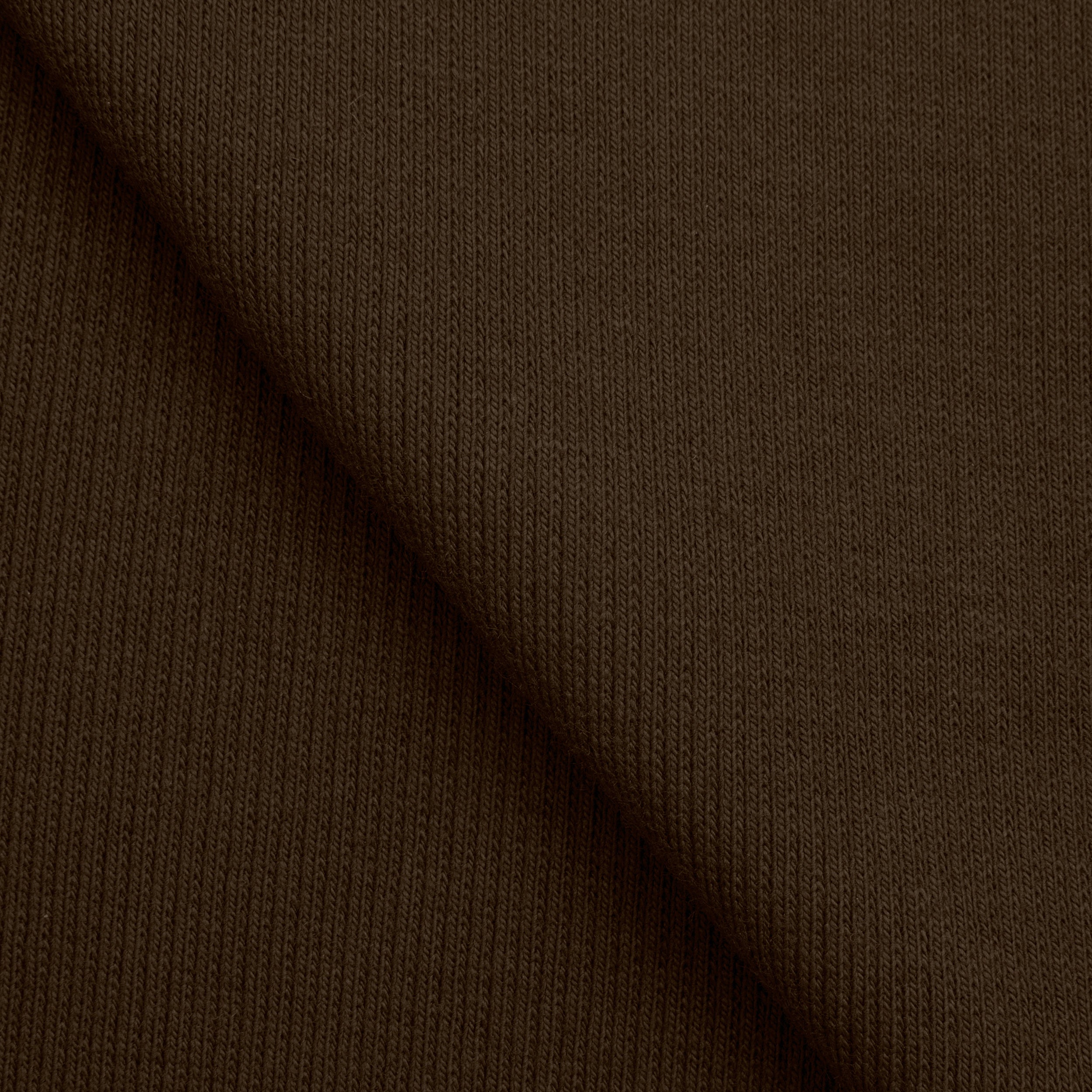 Step into a world of elegance and exceptional comfort with our 1 X 1 COTTON RIB fabric in the warm shade of COFFEE BEAN. This ribbed fabric wraps the silhouette for a perfect fit without restricting movement, and its luxurious texture promises durable and stylish creations.