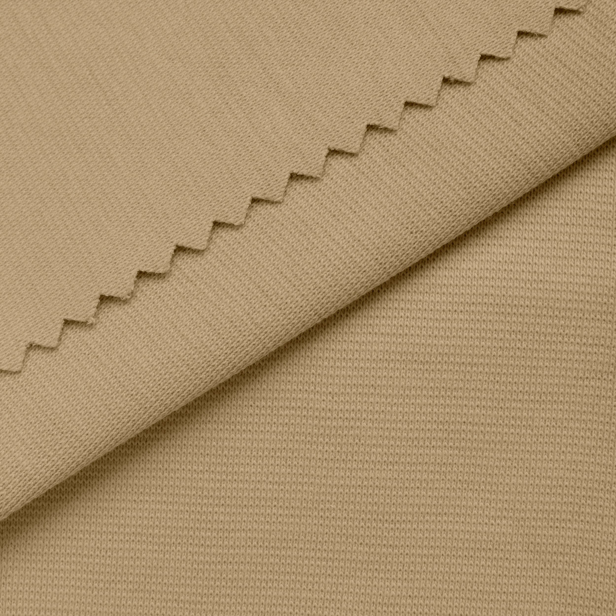 The 1/1 rib knit, with a weight of 220 g/m2, is distinguished by its softness and durability, making it an ideal material for many applications. The weave density of 160 threads per inch ensures dimensional stability and resistance to deformation. The high cotton content makes it soft to the skin and breathable, while the addition of elastane guarantees elasticity and resilience.